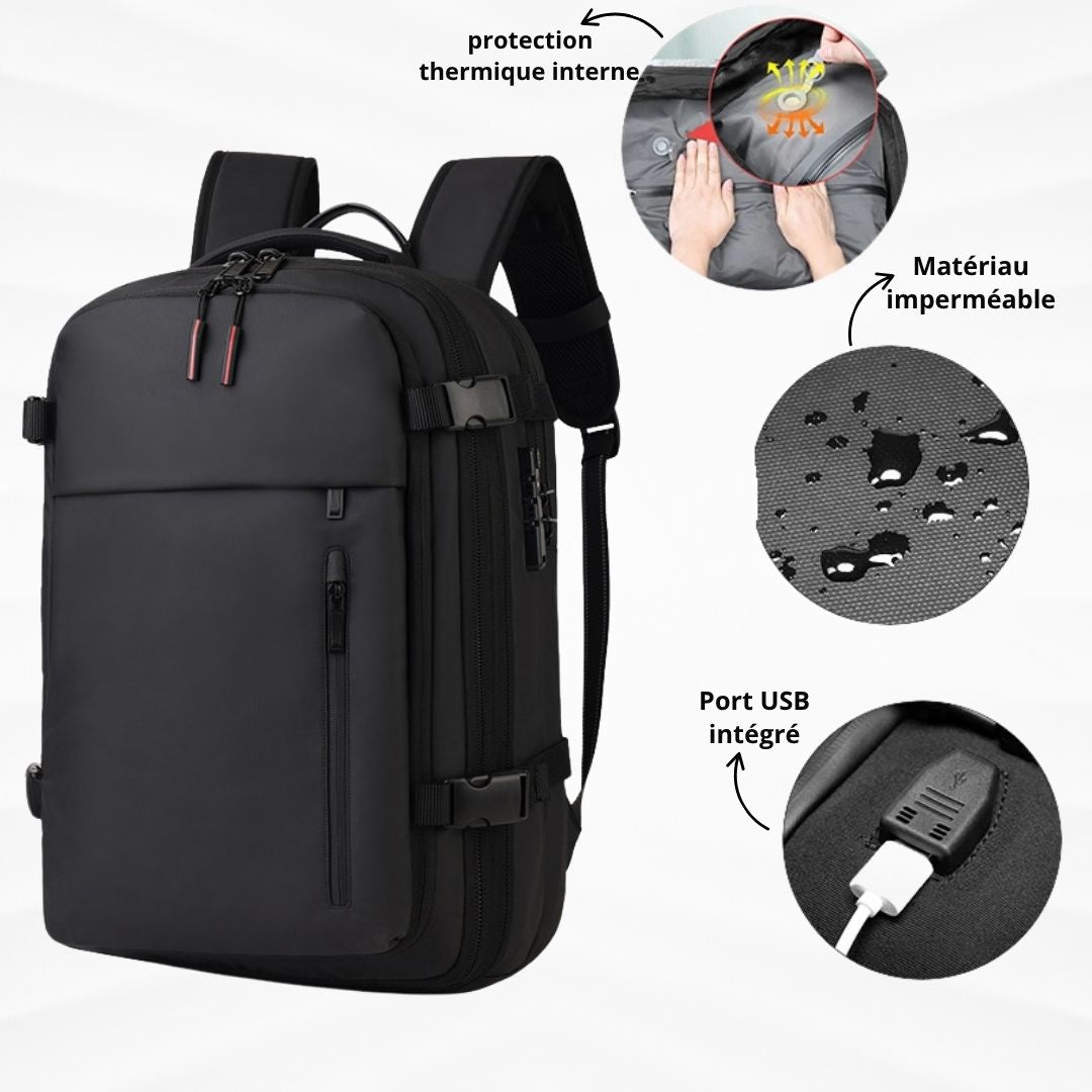 - Sac à dos extensible de 22L à 40L, idéal pour les courts ou longs séjours.